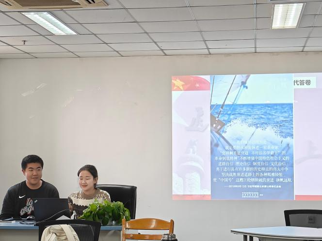 最后,全体同学围绕“新时代的赶考精神”展开了讨论。读书会引用了习近平总书记视察北京香山纪念地的重要讲话,同学们也谈了自己的理解。熊桐建同学结合毛泽东同志“我们不当李自成”的论述,表达了新时代保持谦虚谨慎、不骄不躁的重要性;孙雨晴同学表达了自己对保持“赶考”状态的理解;郭佳同学则结合党史表达了对老一辈革命家赞美之情,并发起了同学们要向老一辈革命家学习的倡议。