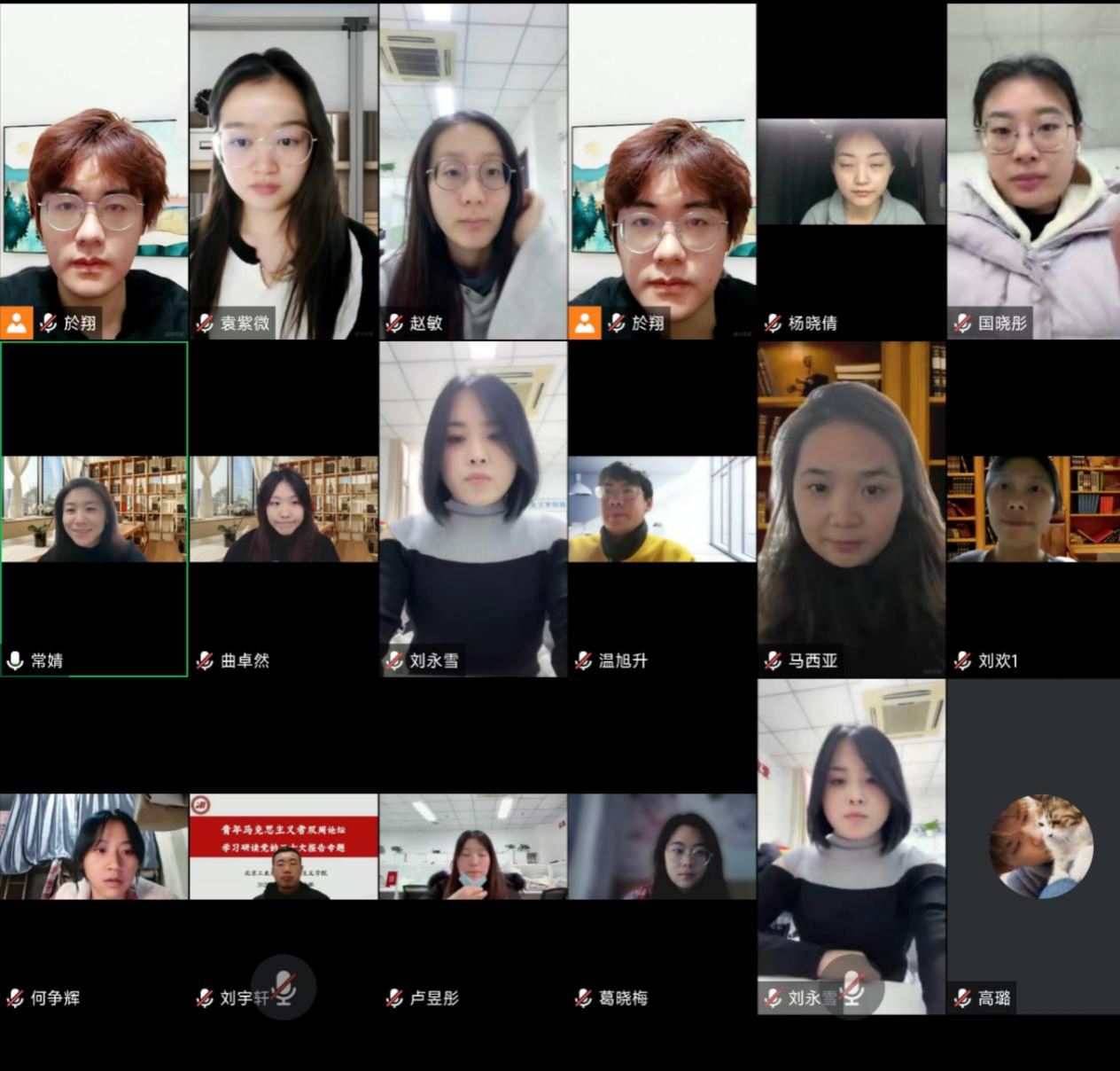 2023年12月13日,yl23411永利马克思主义理论2022级研究生班围绕“坚持以人民为中心”这一主题开展青马读书会暨主题班会活动。本次读书会由葛晓梅主持,刘宇轩、葛晓梅、杨晓倩、卢昱彤进行汇报发言,班主任常婧老师做指导发言并针对同学们的汇报内容进行点评。本次论坛采用线上形式进行。
