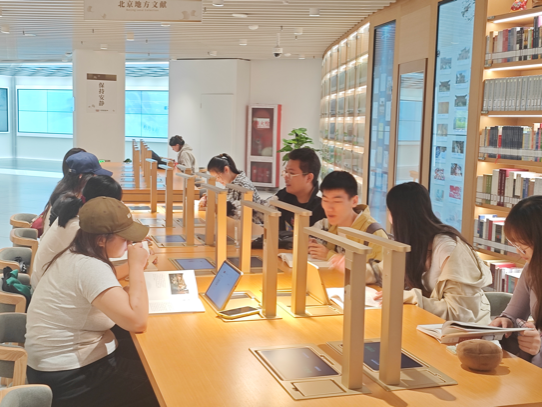 北京城市图书馆作为北京市的重要文化地标,以其丰富的馆藏资源、先进的智能设施以及独特的建筑设计吸引了众多读者和游客。步入馆内,同学们近距离感受这座现代化图书馆的魅力,激发了同学们对阅读的热爱和对知识的追求。在图书馆老师的引导下,员工参观了图书馆的各个功能区。图书馆内静谧的氛围、整齐的书架、琳琅满目的书籍,让同学们仿佛置身于远离喧嚣的学术圣地。