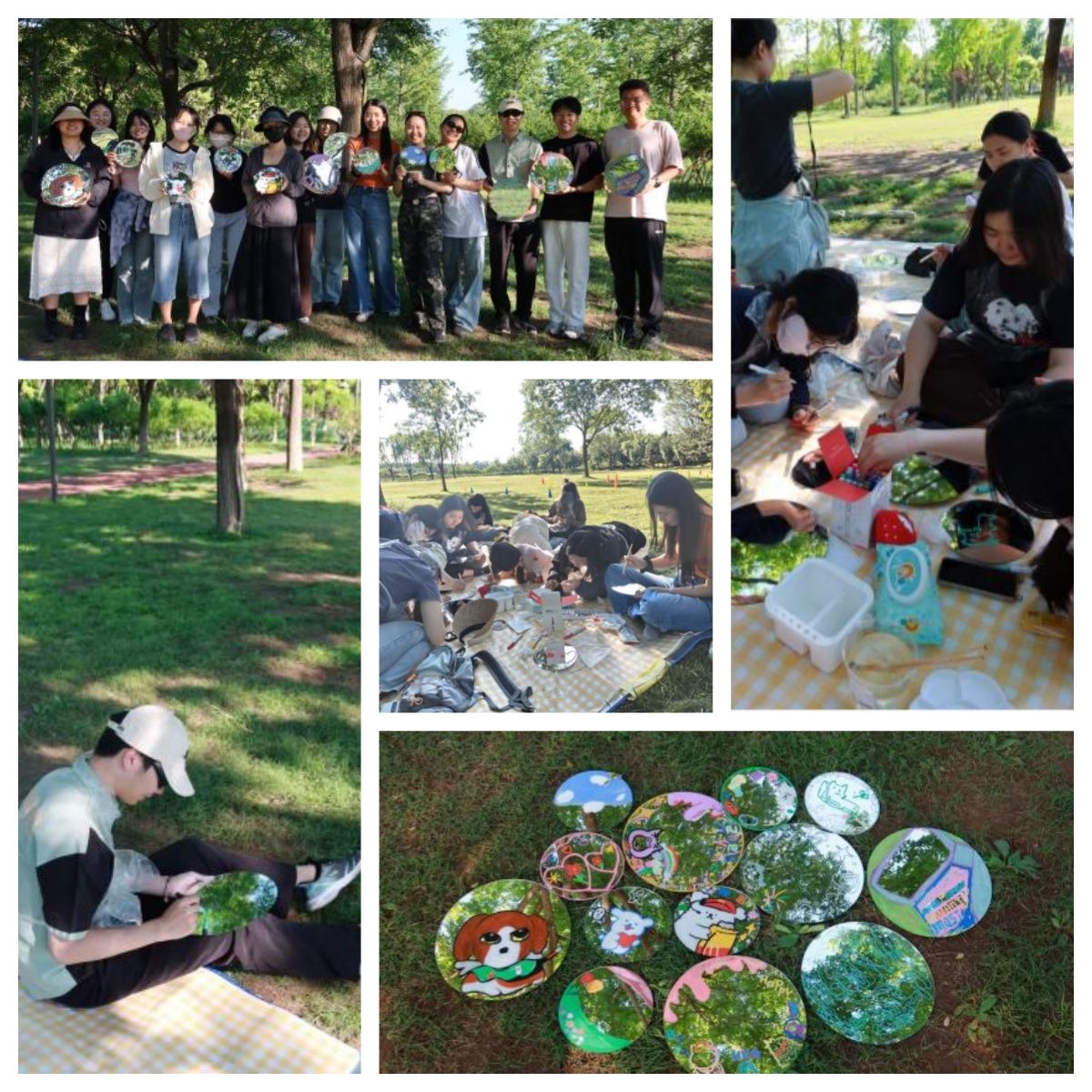 随后,在森林公园开阔的草坪上,“镜面涂鸦·艺术疗愈”创意环节徐徐展开。同学们手持环保丙烯笔,在镜面上开启了一场与自我对话的艺术之旅。有的笔走龙蛇,用抽象线条勾勒内心波澜;有的精描细绘,将喜爱的卡通形象跃然“镜”上;更有同学以象征手法,通过色彩与构图传递情感密码。这些在阳光下熠熠生辉的镜面画作,既是对外在世界的艺术再现,更是内心图景的生动投射。活动特别设计的镜面载体,暗喻“以心为镜”的心理成长理念——当同学们俯身创作时,不仅能在镜中看见自己的倒影,更能通过艺术表达实现与自我心灵的深度对话。这种融合了表达性艺术治疗与正念理念的创意实践,不仅激发了同学们的艺术潜能,更搭建了一座通往内心世界的桥梁。