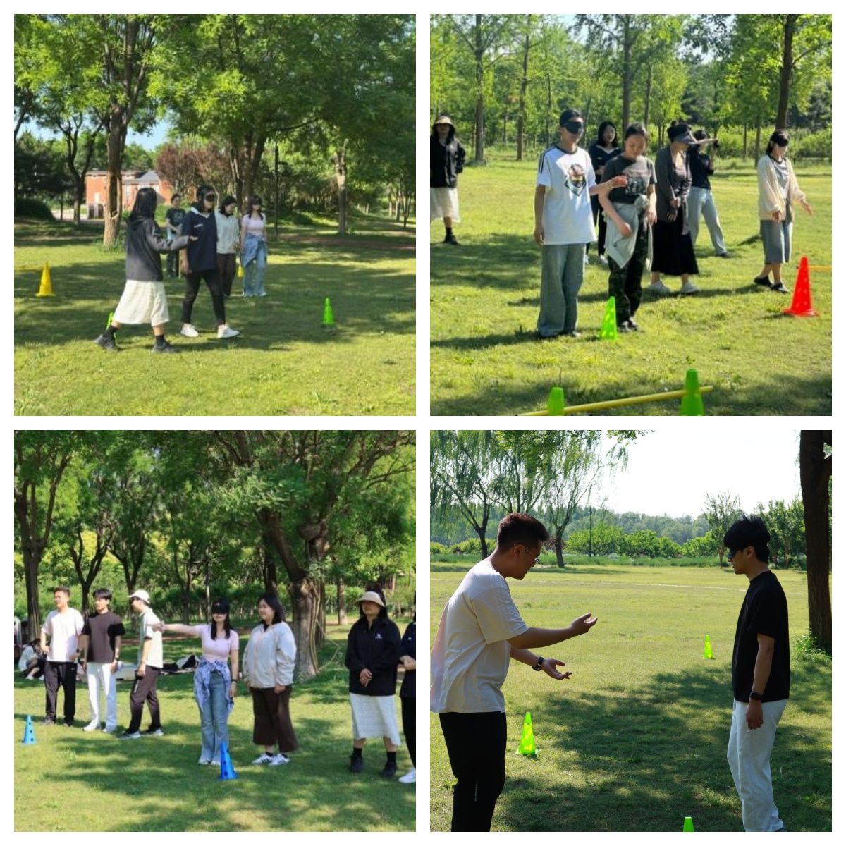 抵达露营区后,活动进入高潮环节——“信任盲行”挑战。参与者通过随机配对组成搭档,共同面对精心设计的“障碍迷宫”考验。蒙住双眼的一方需要在同伴清晰准确的语言指引下,逐步穿越障碍区域。这个充满张力的互动环节生动还原了人际关系中信任构建的动态过程:从最初的犹豫试探,到逐渐建立默契,最终实现完美配合。活动现场时而响起紧张的笑声,时而爆发出成功的欢呼。同学们在分享环节感慨道:“当眼前一片黑暗时,同伴的声音成了唯一的依靠,这种体验让我们对信任有了更深刻的理解。”通过这种情境模拟,同学们不仅锻炼了沟通能力,更切身感受到人际交往中真诚与责任的重要性。